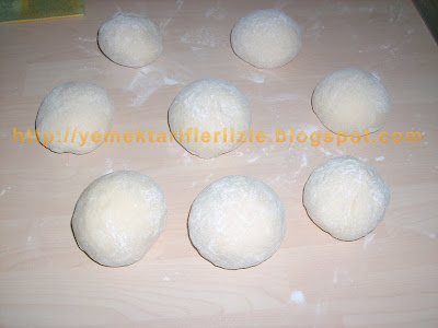 Elma puremiz sogurken bizde hamurumuzu yapmaya basliyoruz. Hamurumuzu kulak memesi kivamina gelene kadar yoguralim, ardindan hamurumuzdan bir portakal buyuklugunde bezeyi ayiralim geri kalan hamurumuzu kalibimiza alalim.
